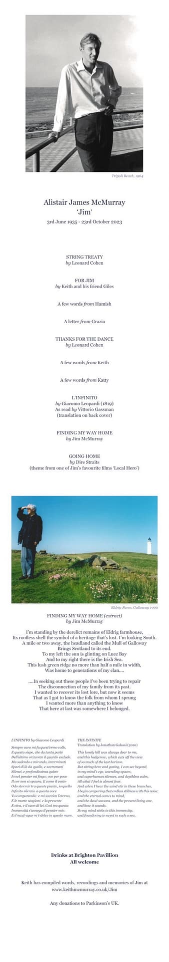 This is a web page with various Jim-related things including his writing, some photos, recordings of him talking about his life and many of the kind words about him sent to the family after hearing of his passing.